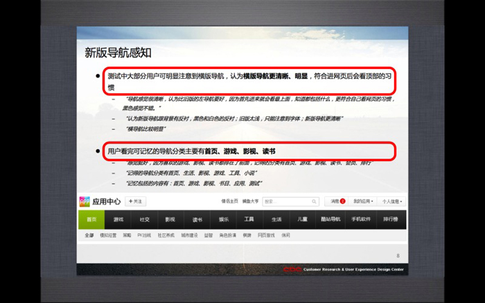 交互改動(dòng)稿很簡(jiǎn)單,直接針對(duì)用研結(jié)論中的問(wèn)題,并嘗試解決。頂部導(dǎo)航讓信息架構(gòu)更清晰。每個(gè)內(nèi)容模塊也開(kāi)始更規(guī)整。在和產(chǎn)品同事交流的過(guò)程中,我們也把之前頁(yè)面中完全被淹沒(méi)的影視和讀書(shū)兩個(gè)區(qū)塊列入重點(diǎn)優(yōu)化計(jì)劃(后面視覺(jué)稿可以看到細(xì)節(jié))。這個(gè)時(shí)候,在細(xì)化設(shè)計(jì)前,我們又做了第二次用研來(lái)再次確認(rèn)設(shè)計(jì)師的靈感。方式是請(qǐng)用戶來(lái)測(cè)試我們的Demo,結(jié)論很快出來(lái)了: