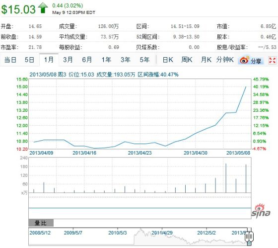 可以作為佐證的是,高德股價在過往10個交易日中持續(xù)快速上漲,從4月26日的10.5美元,上漲至5月9日的15美元,漲幅高達(dá)43%。