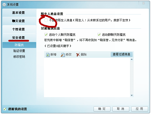 一、點擊阿里軟件的“系統(tǒng)設置”,再點安全設置,按照下圖設置。防騷擾設置: